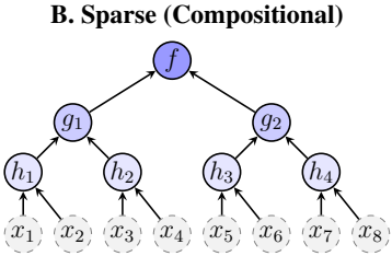 This captures the essence of Sparse Compositionality. The central argument of this series is that the functions governing the real world—vision, language, physics, motor control—are struc-tured exactly this way.